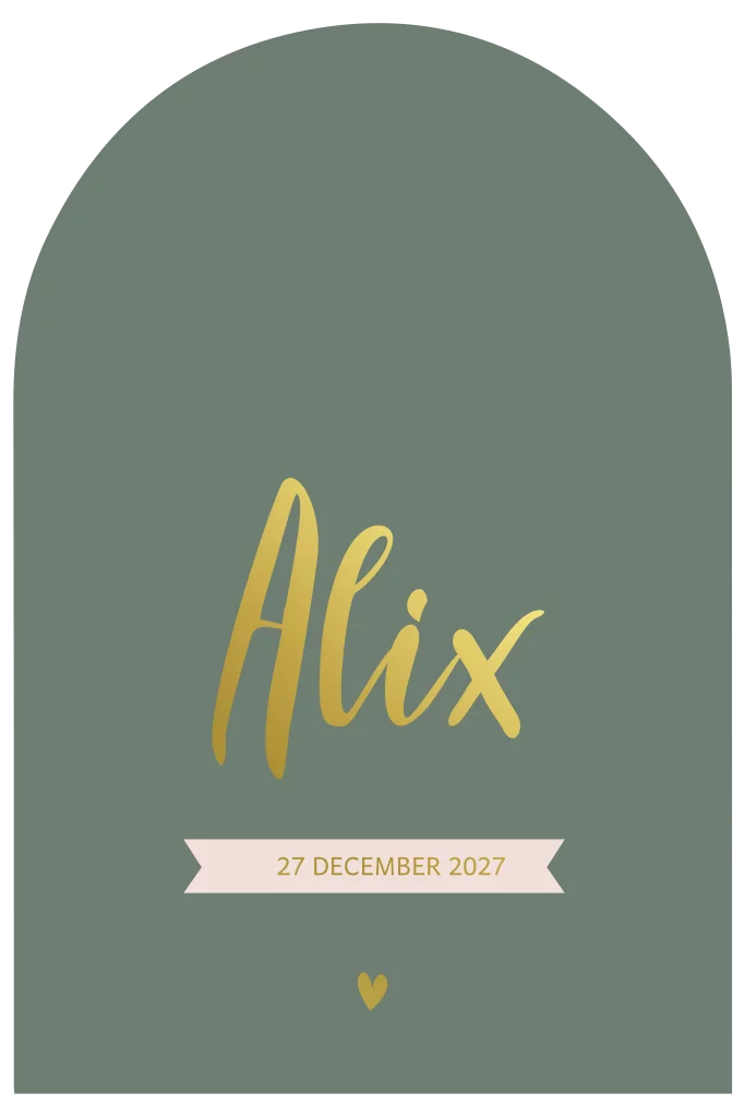 Groen met roze geboortekaartje met boogvorm en foliedruk
