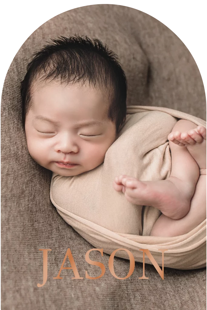 Dit leuke geboortekaartje met boogvorm kun je helemaal persoonlijk maken met de mooiste foto van jouw pasgeboren kindje. Ook de kleur van de folie en achterkant kun je naar wens aanpassen.