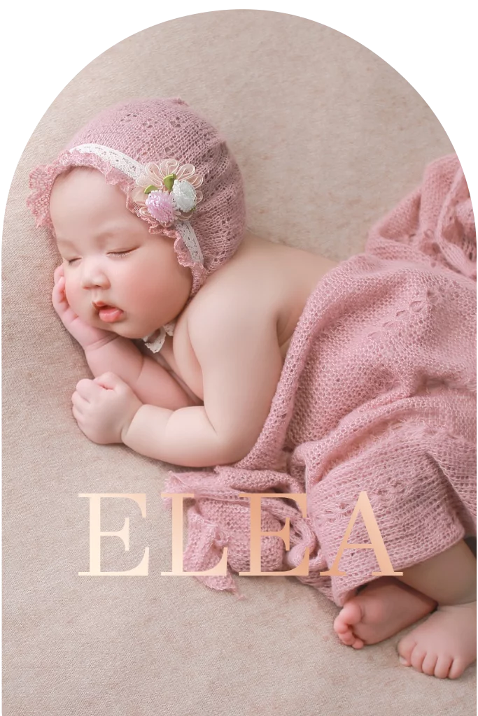 Een geboortekaartje met een gestanste vorm en een foto. Vervang de foto voor die van jouw pasgeboren babietje en pas de rest van de kaart verder aan in de editor.