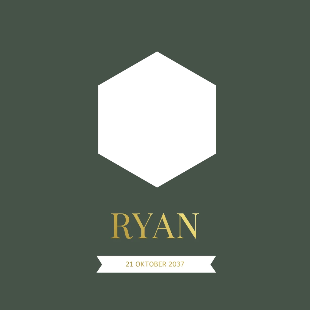 Een vierkant geboortekaartje met een stans in de vorm van een hexagon. Door het doorkijkje zie je de initiaal in goudfolie. Het hele kaartje is naar wens aan te passen.