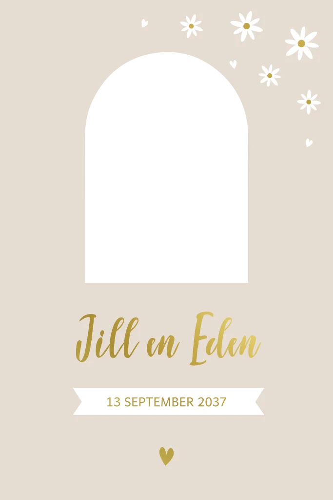 Geboortekaartje met een gestanste boog waardoor je de foto aan de binnenkant ziet. Plaats jouw eigen foto van je pasgeboren baby'tje en pas het kaartje naar wens aan.