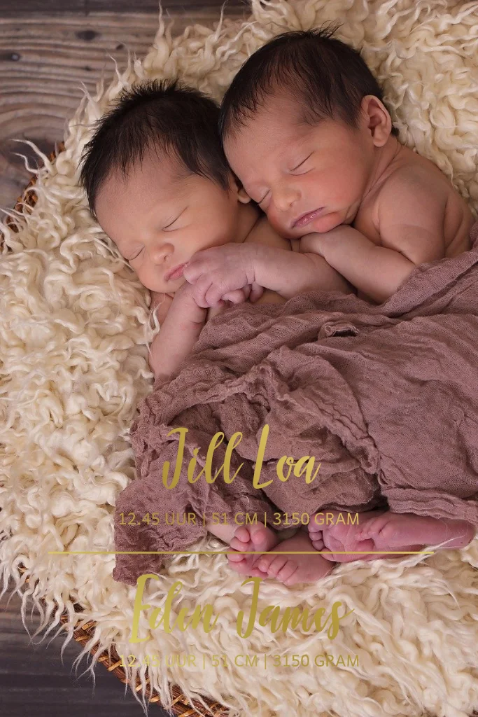 Geboortekaartje tweeling met doorkijk boogje en foliedruk