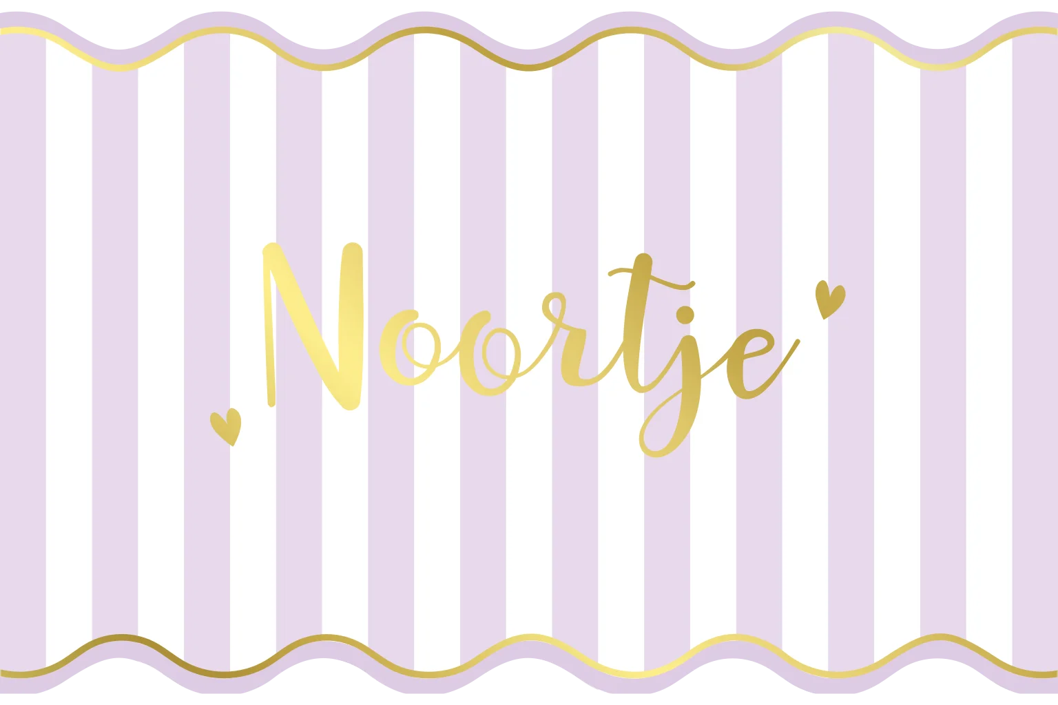 Een golvend geboortekaartje met lila strepen en folie afwerking. Het geboortekaartje is volledig naar wens aan te passen.