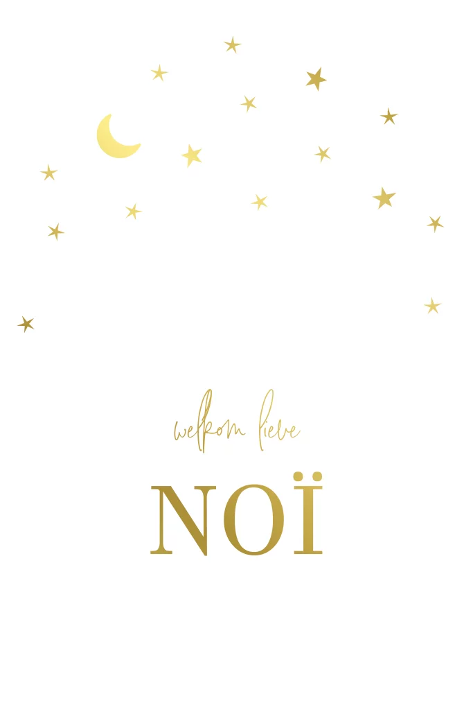 Een ovaal geboortekaartje met goudfolie, maan en sterren. Je kan het geboortekaartje naar wens aanpassen, dus ook kleur toevoegen als je dat mooi vindt.