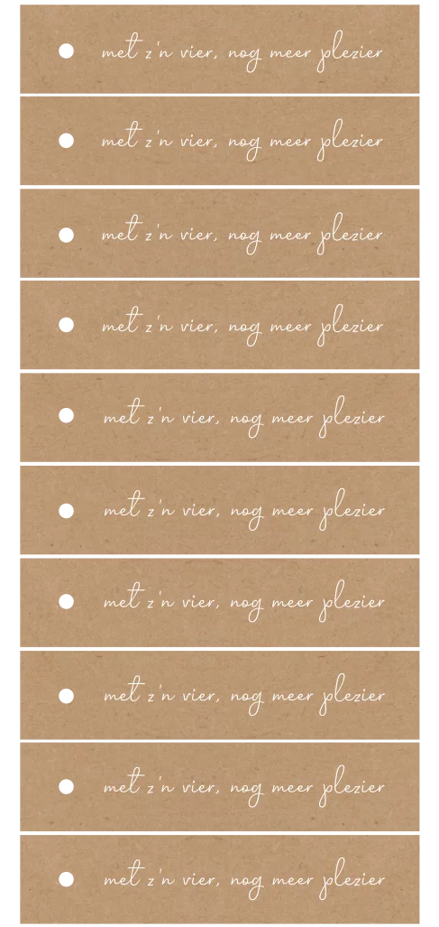 Een langwerpig label voorzien van een gaatje, waardoor je er alleen maar een touwtje doorheen hoeft te doen.