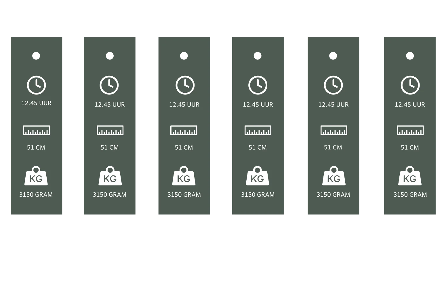 Voeg een persoonlijk accent toe aan je geboortekaartje met deze losse icoon labels! Op elk vel zitten 6 labels met voorgestanste gaatjes, ideaal om eenvoudig aan het geboortekaartje te bevestigen met touw of lint. Je kunt de gegevens en kleur naar wens vervangen, zodat elk kaartje een uniek en liefdevol detail krijgt.