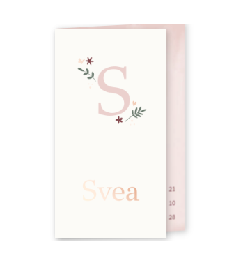 Geboortekaartje met initiaal, smalle voorkant en foliedruk