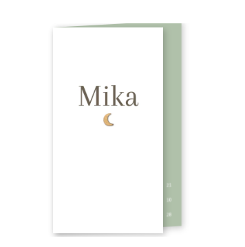 Een uniek geboortekaartje met een smalle voorkant, afgewerkt met foliedruk. Het kaartje is geheel naar wens aan te passen.
