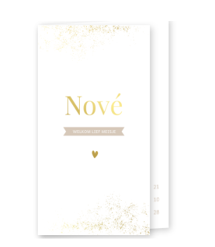Wit geboortekaartje met smalle voorkant en foliedruk