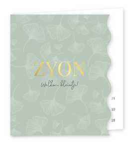 Een uniek geboortekaartje met een smalle voorkant, afgewerkt met foliedruk. Het kaartje is geheel naar wens aan te passen.