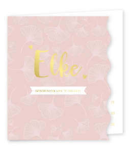 Een uniek geboortekaartje met een smalle voorkant, afgewerkt met foliedruk. Het kaartje is geheel naar wens aan te passen.