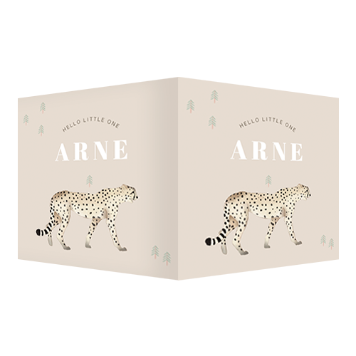 Een schattig geboortekaartje met cheetah, perfect voor de nieuwste aanwinst. Pas het ontwerp aan in onze online editor.