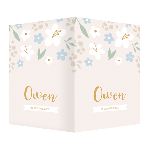 Een vintage geboortekaartje met bloemen in blauw-groen. Personaliseer eenvoudig in onze online editor.