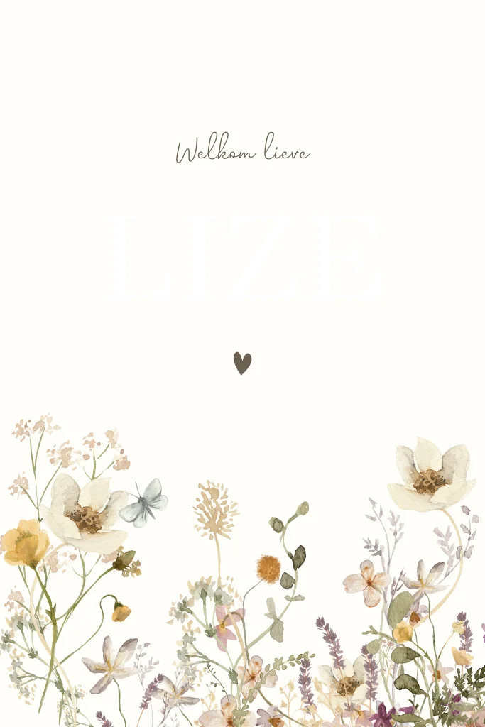 Een staande geboorteposter met wilde bloemen. De tekst is naar wens aan te passen.