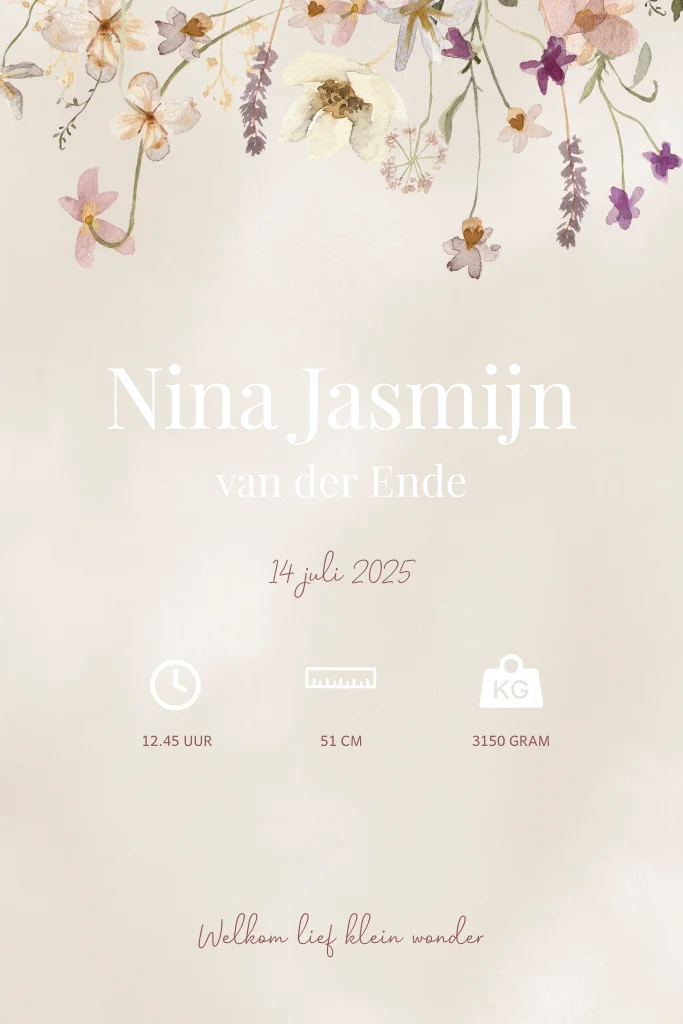 Personaliseer de poster met de naam en geboortedatum van je baby en voeg een mooie en unieke touch toe aan je huis of kamer!
