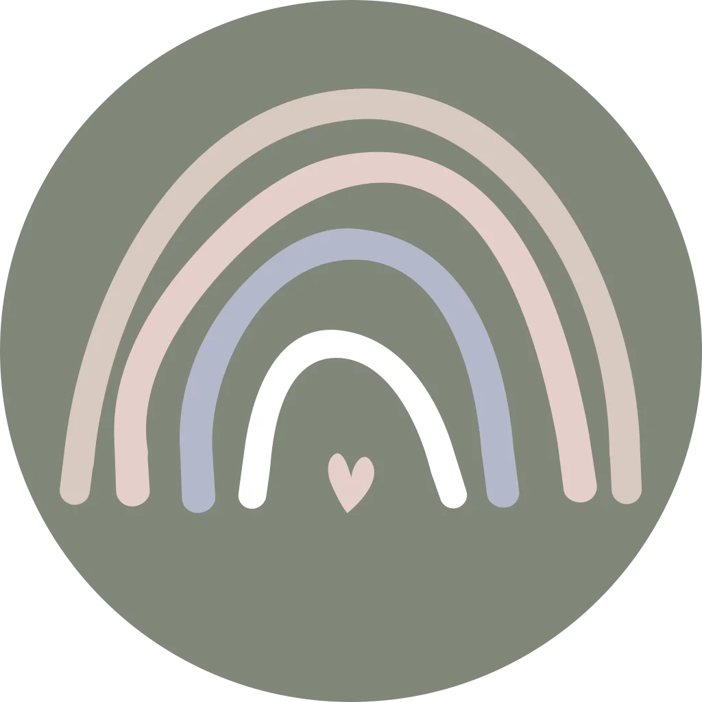 Een vrolijke sluitzegel met gekleurde regenboog en klein hartje. De sticker is geheel naar wens aan te passen zodat deze mooi aansluit bij jullie geboortekaartje.