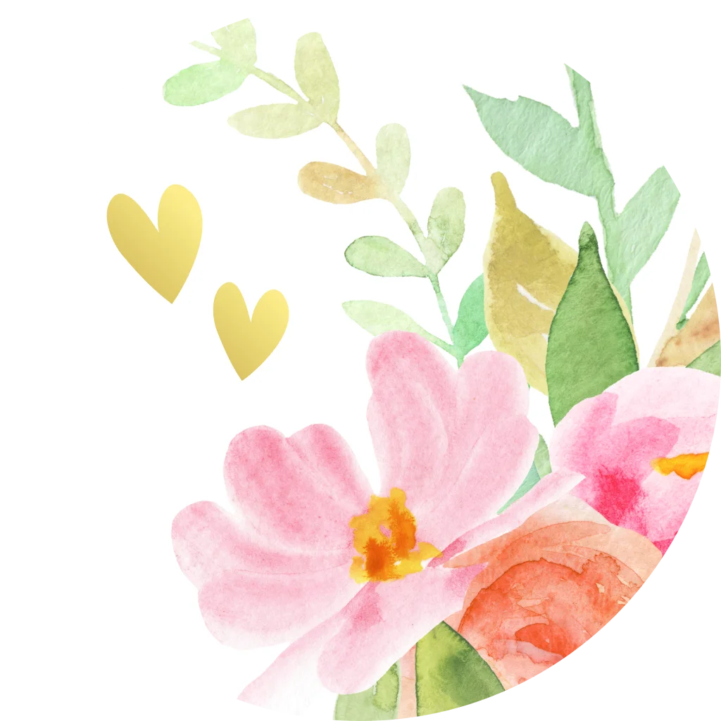 Sluitzegel met waterverf bloemen en foliedruk hartjes