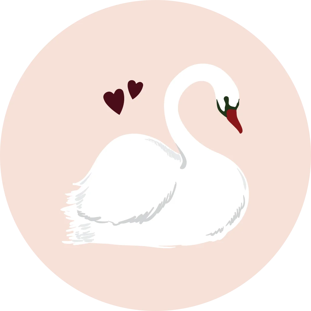 Een bohemian stijl sluitzegel met een lichtroze achtergrond en zwaan. De sluitzegel is naar wens aan te passen.