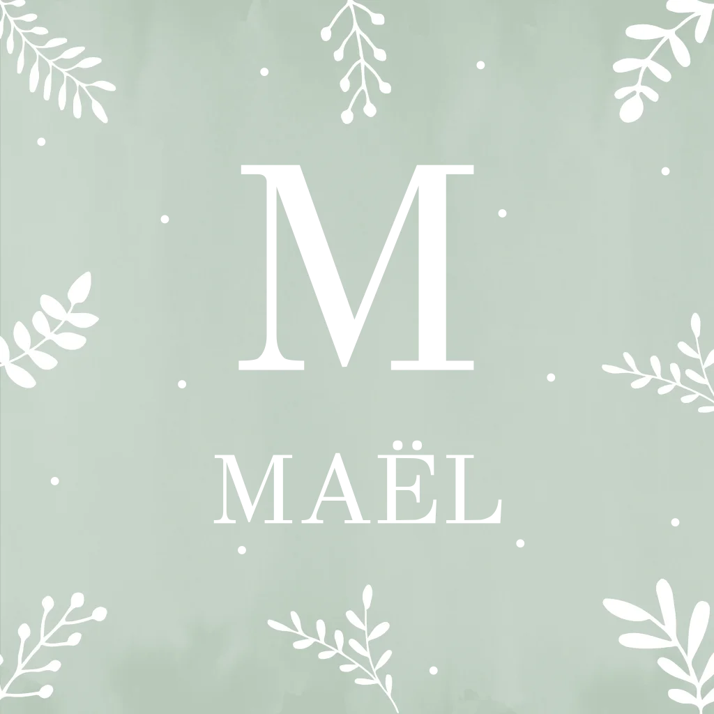 Geboortekaartje jongen met initiaal, takjes en goudfolie