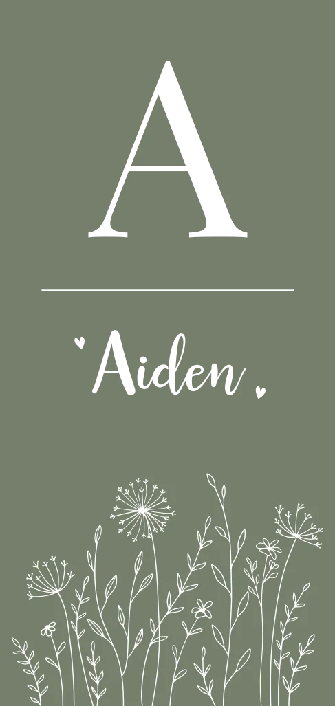 Een langwerpig geboortekaartje met een initiaal, foliedruk en takjes. Je kunt dit geboortekaartje zelf gemakkelijk aanpassen naar wens.