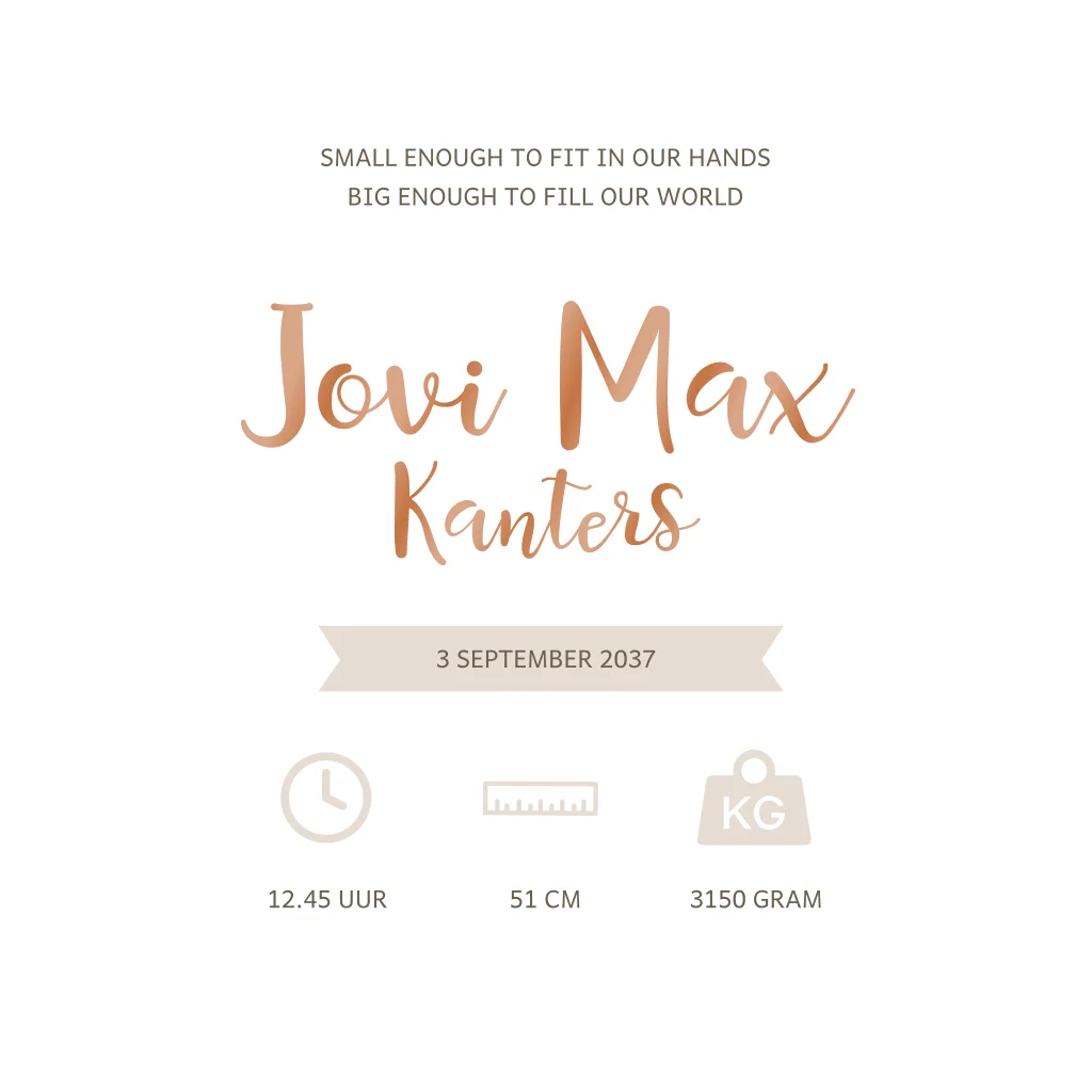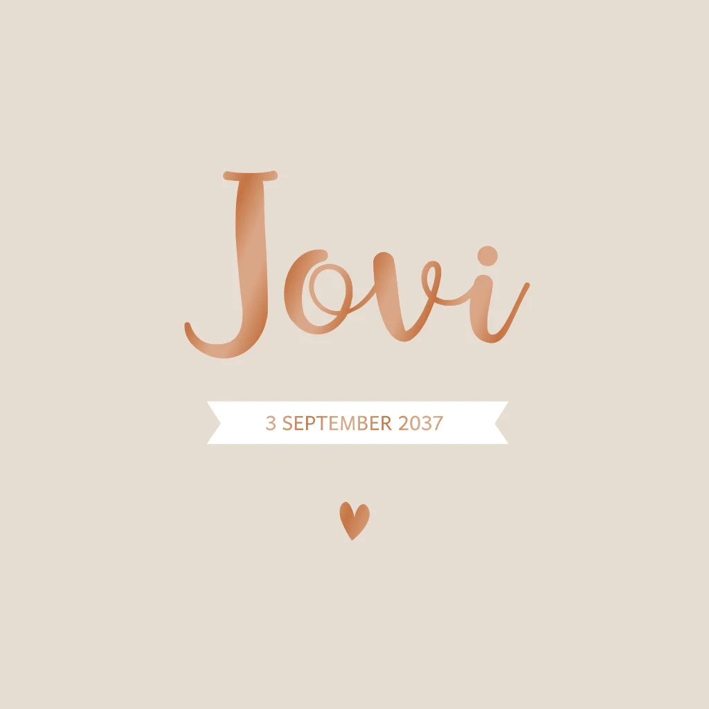 Neutraal geboortekaartje met ronde hoeken en koperfolie