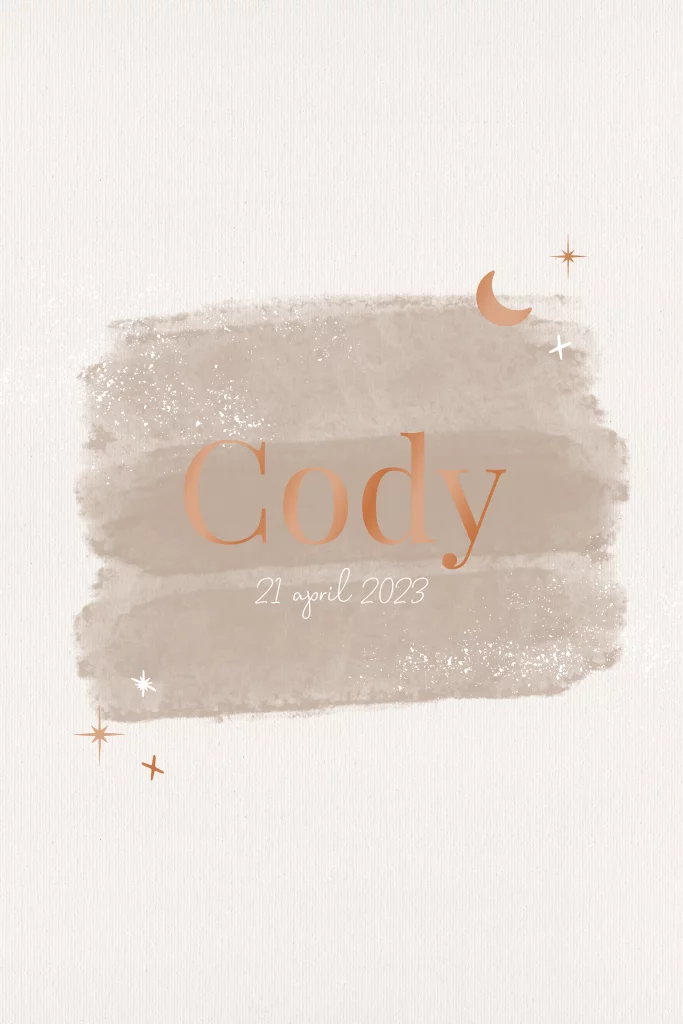 Zoek je een rustig en stijlvol geboortekaartje? Dan is dit kaartje met koperen maantje perfect voor jou! Het kaartje is geheel op maat te maken in de handige online editor of gratis door het ontwerpteam. Het kaartje is gemaakt van stevig, kwalitatief hoogwaardig papier en afgewerkt met koperen details. Je kunt het kaartje helemaal aanpassen aan jouw wensen en stijl. Kies bijvoorbeeld voor een rustige achtergrondkleur en een mooie foto van je kleintje. Of maak het kaartje extra bijzonder door een leuke tekst toe te voegen.
