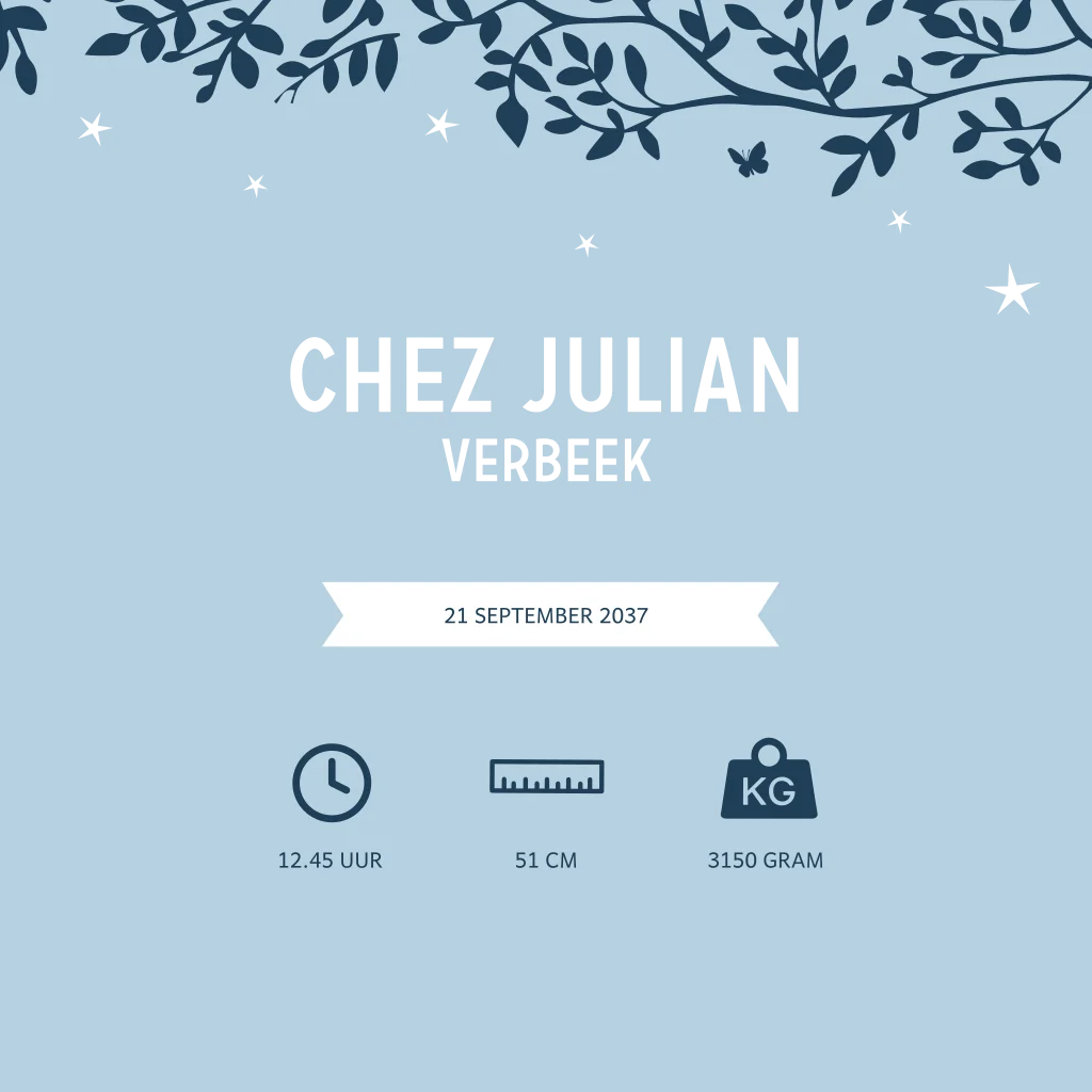 Een uniek geboortekaartje voor een zoontje met silhouette. Het kaartje is helemaal aan te passen naar jouw situatie, dus stuur me gerust een berichtje als ik dit kaartje voor je kan omzetten. Je vindt het dan terug in je account, waar je vervolgens zelf de naam en andere tekst kan toevoegen.