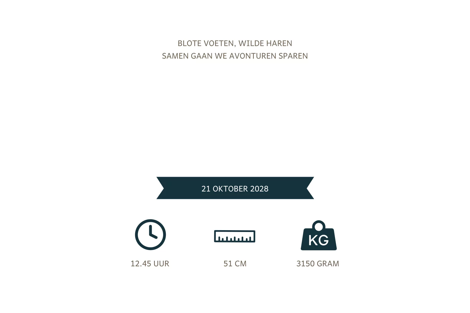 Liever helemaal geen werk aan het geboortekaartje? Kies dan voor een ontwerp op maat. Let op: Alle geboortekaartjes zijn uit te breiden met mooie extra’s.