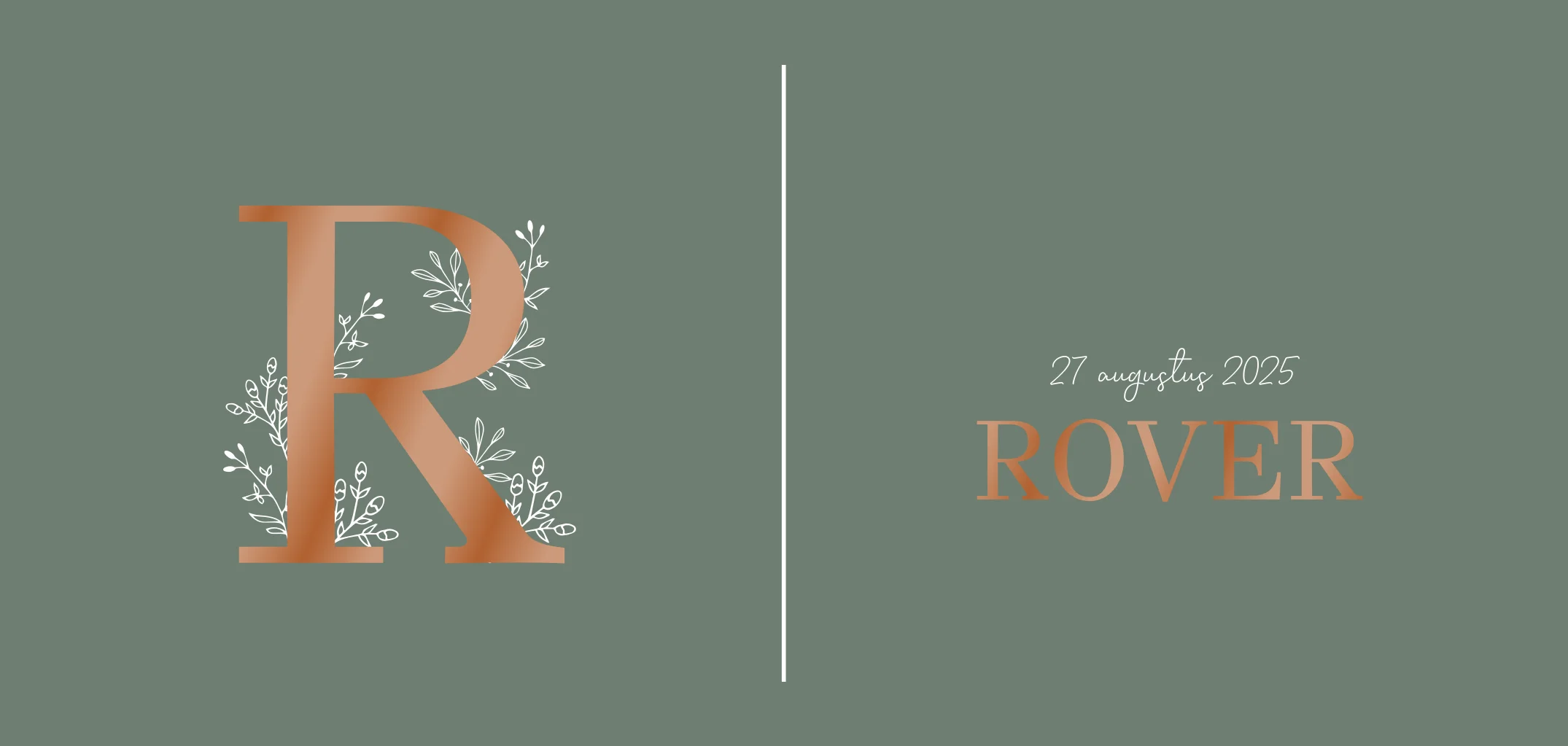Een langwerpig, liggend geboortekaartje met ronde hoeken. Op de voorkant heeft het kaartje een initiaal met getekende blaadjes en takjes er om heen. Je kan het kaartje helemaal naar wens aan (laten) passen. Villa Pluis ontwerpt écht unieke en originele geboortekaartjes, die je niet zo snel ergens anders zal vinden. Alle kaartjes zijn naar wens aan te passen. Dit kun je zelf doen met de handige online ontwerp editor, maar wij kunnen je ook (gratis) helpen. Bestel daarna snel een proefdruk om het kaartje in het echt te zien!