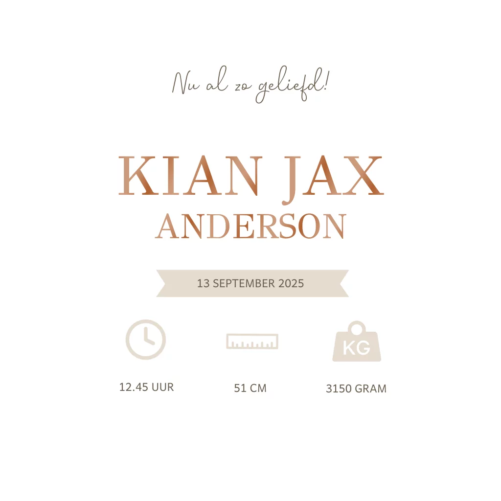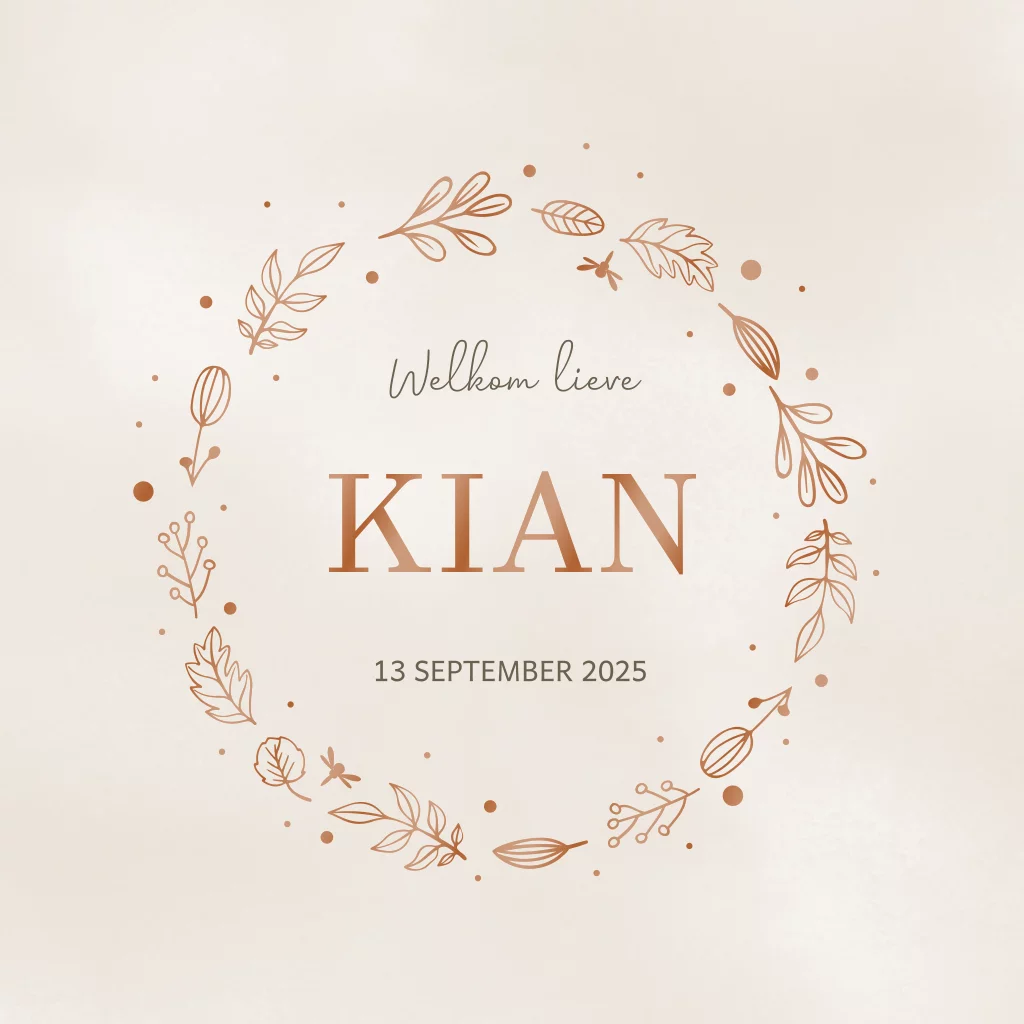 Een vierkant gevouwen geboortekaartje afgewerkt met koperfolie. Het kaartje kun je helemaal naar wens aan (laten) passen. Villa Pluis ontwerpt écht unieke en originele geboortekaartjes, die je niet zo snel ergens anders zal vinden. Alle kaartjes zijn naar wens aan te passen. Dit kun je zelf doen met de handige online ontwerp editor, maar wij kunnen je ook (gratis) helpen. Bestel daarna snel een proefdruk om het kaartje in het echt te zien!