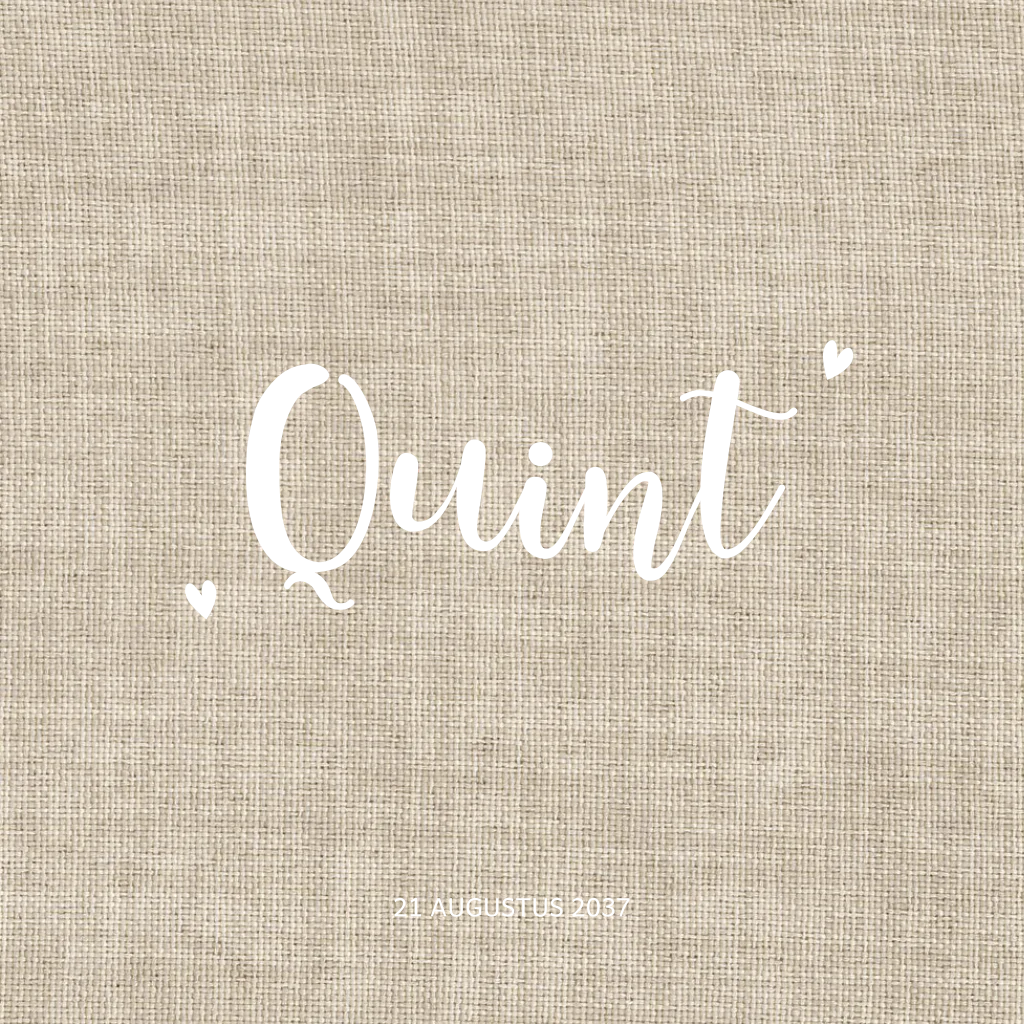 Dit vierkante gevouwen geboortekaartje met ronde hoeken en linnen kun je zelf aanpassen in de editor. Voeg extra tekst toe of verander de kleur van de folie.