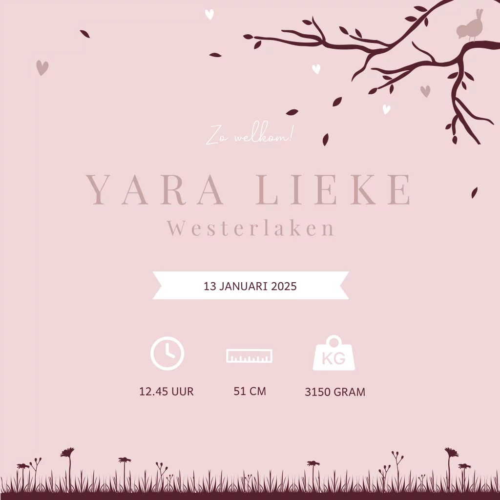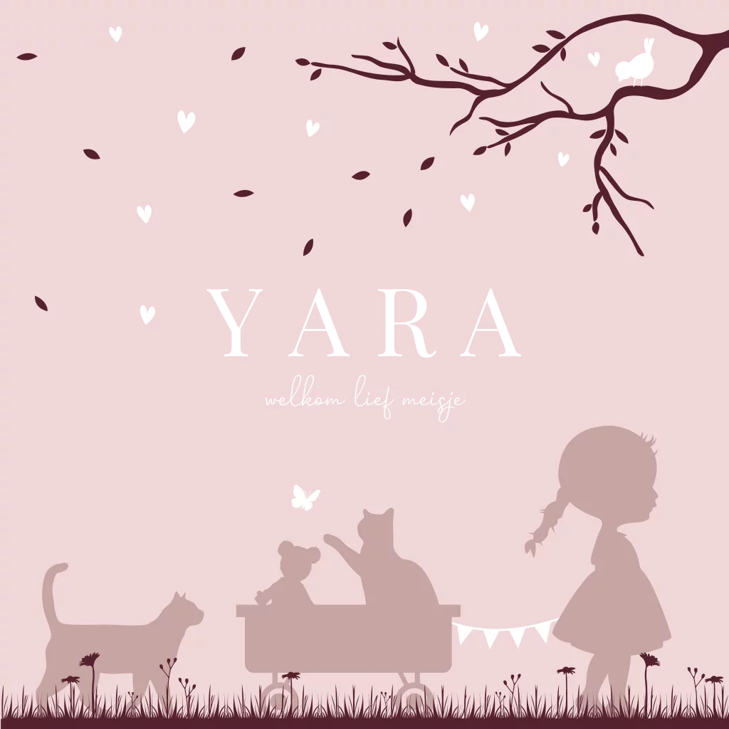 Een uniek geboortekaartje voor een meisje met silhouette. Het kaartje is helemaal aan te passen naar jouw situatie, dus stuur me gerust een berichtje als ik dit kaartje voor je kan omzetten. Je vindt het dan terug in je account, waar je vervolgens zelf de naam en andere tekst kan toevoegen. Villa Pluis ontwerpt écht unieke en originele geboortekaartjes, die je niet zo snel ergens anders zal vinden. Alle kaartjes zijn naar wens aan te passen. Dit kun je zelf doen met de handige online ontwerp editor, maar wij kunnen je ook (gratis) helpen. Bestel daarna snel een proefdruk om het kaartje in het echt te zien!