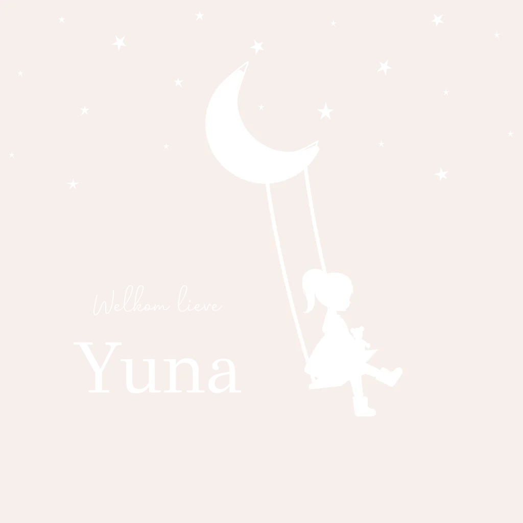 Een vierkant, gevouwen geboortekaartje dat is afgewerkt met gouden foliedruk. Het kaartje is helemaal naar wens aan te passen.
