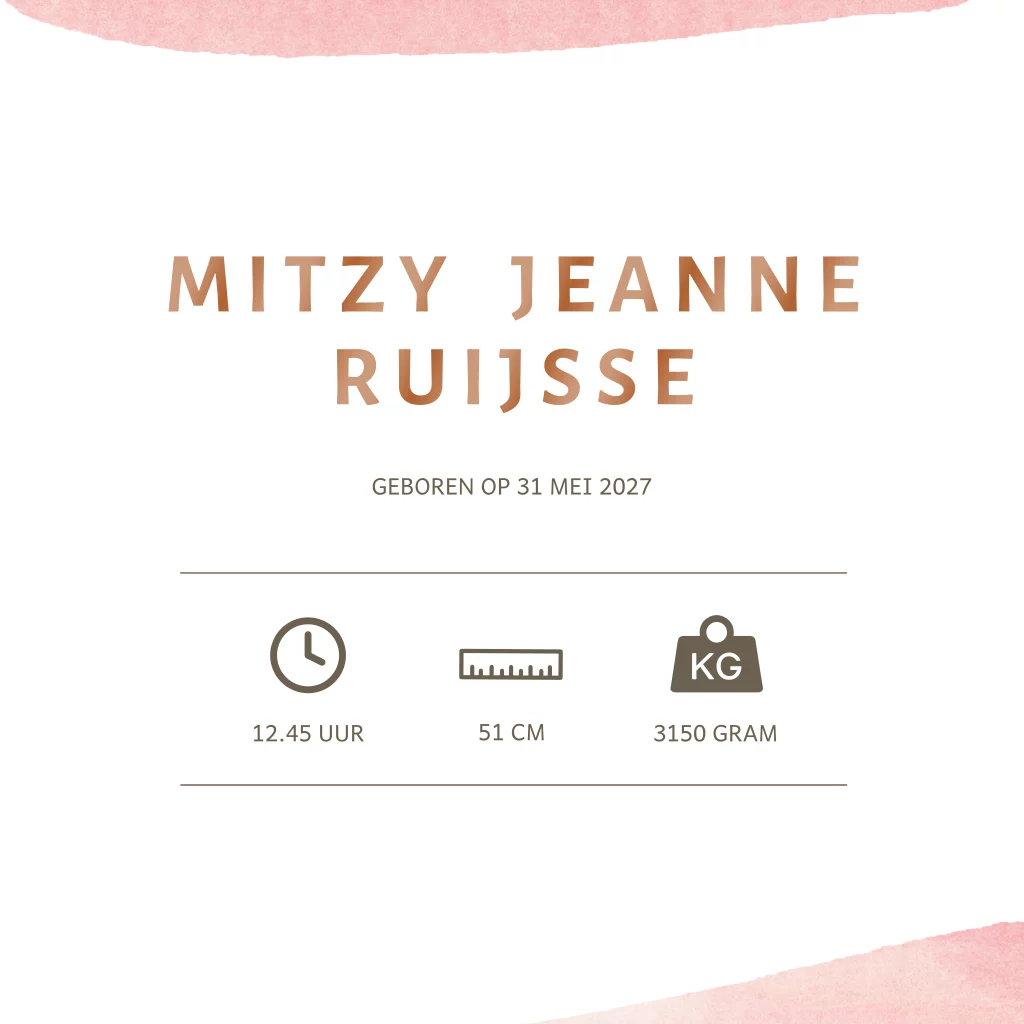 Dit vierkante geboortekaartje is super stijlvol en trendy dankzij de waterverf kleur en de foliedruk. Het initiaal maakt het kaartje extra bijzonder en geeft het net even dat beetje extra liefde. Perfect voor een uniek geboortekaartje!