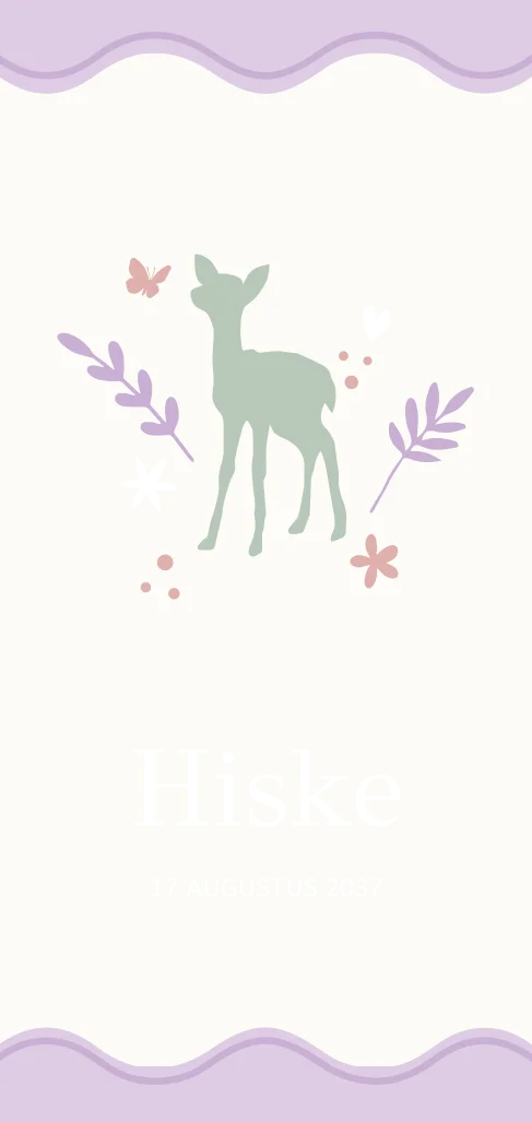 Geboortekaartje meisje met hertje en bloemen en goudfolie