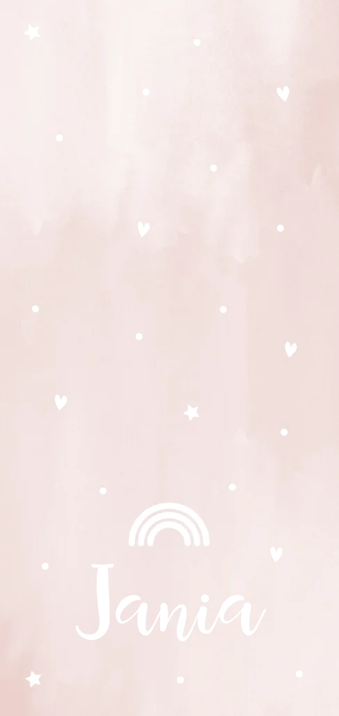 Geboortekaartje met sterretjes, hartjes en een regenboog
