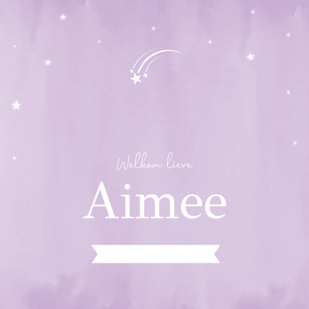 Een vierkant gevouwen geboortekaartje met waterverf, sterren en een vallende ster. De binnenkant heeft ruimte voor extra tekst. Het kaartje kun je helemaal naar wens aan (laten) passen. Villa Pluis ontwerpt écht unieke en originele geboortekaartjes, die je niet zo snel ergens anders zal vinden. Alle kaartjes zijn naar wens aan te passen. Dit kun je zelf doen met de handige online ontwerp editor, maar wij kunnen je ook (gratis) helpen. Bestel daarna snel een proefdruk om het kaartje in het echt te zien!