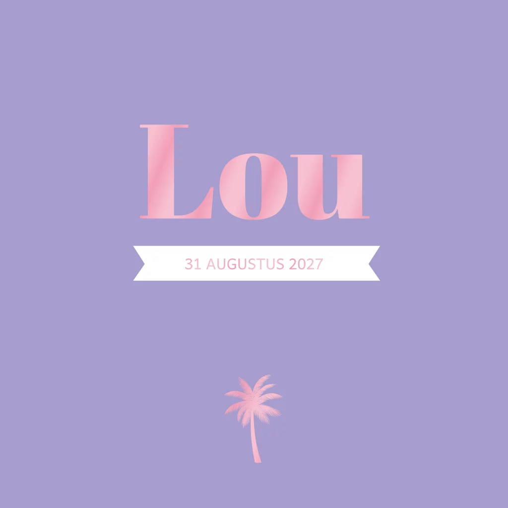 Kleurrijk geboortekaartje met hoogglans letters en zomerse uitstraling