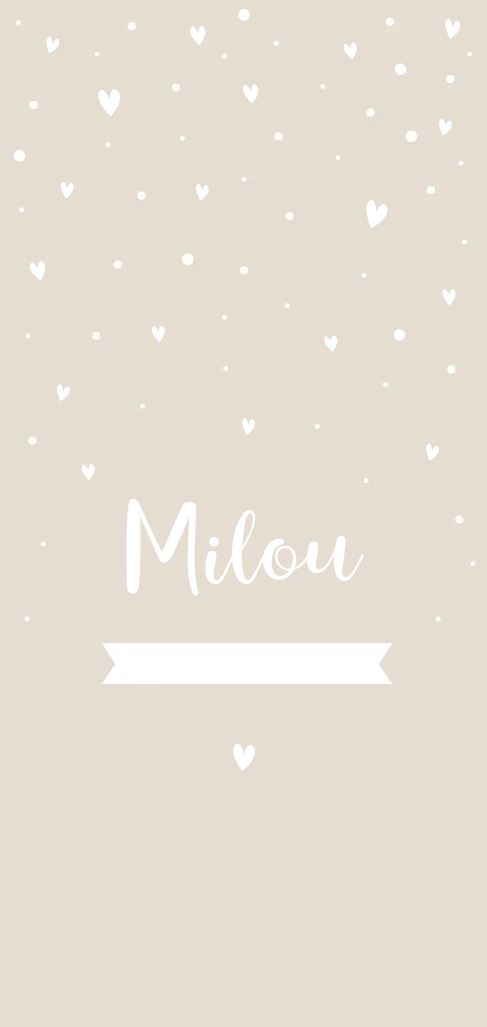 Een langwerpig geboortekaartje met foliedruk en hartjes. De kleuren en folie is naar wens aan te passen.