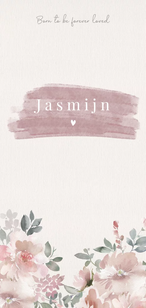 Een langwerpig geboortekaartje met waterverf en bloemen. Het kaartje is langwerpig en heeft mooie waterverf- en bloemenprintjes. Het ontwerp is naar wens aan te passen, zodat het precies bij jouw stijl past. De kaart is ook verkrijgbaar in andere kleurencombinaties. Neem snel een kijkje op onze website voor de mogelijkheden.