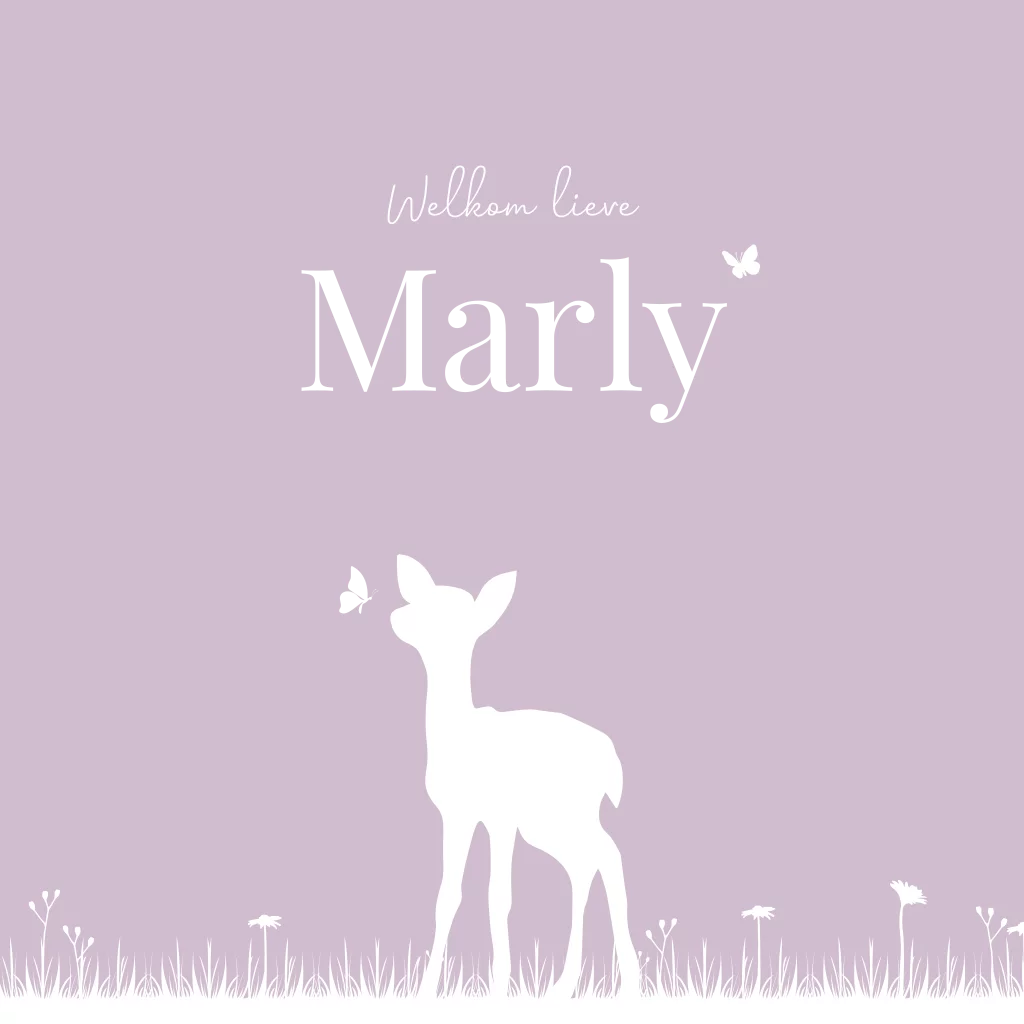 Een lief geboortekaartje voor een meisje met silhouette van een hertje. Het kaartje is helemaal aan te passen naar jouw situatie, dus stuur me gerust een berichtje als ik dit kaartje voor je kan omzetten. Je vindt het dan terug in je account, waar je vervolgens zelf de naam en andere tekst kan toevoegen.