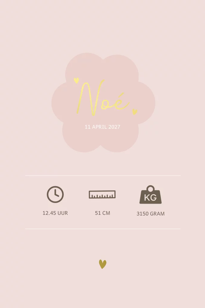 Rechthoekig gevouwen geboortekaartje met bloemetjes opening