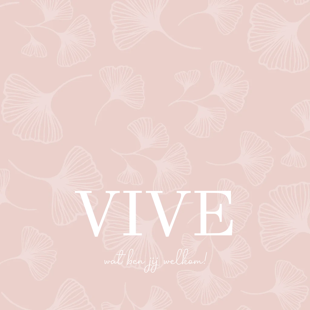 Vierkant geboortekaartje met blaadjespatroon en foliedruk