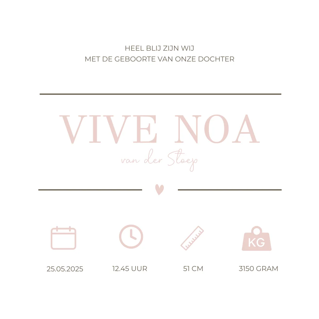 Een vierkant gevouwen geboortekaartje met foliedruk. Het kaartje is helemaal naar wens aan te passen. Vind je dit lastig? Het ontwerpteam helpt je er graag mee!