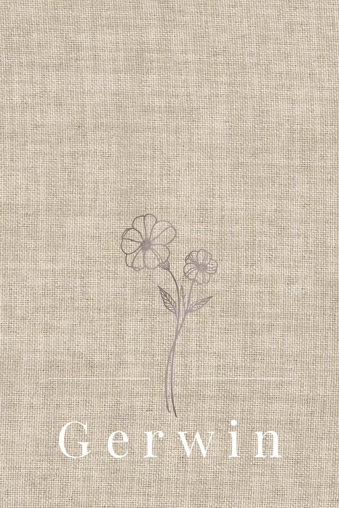 Een rechthoekig geboortekaartje met linnenlook en handgetekende geboortebloem in spotlak. In de editor kun je het ontwerp naar wens aanpassen.