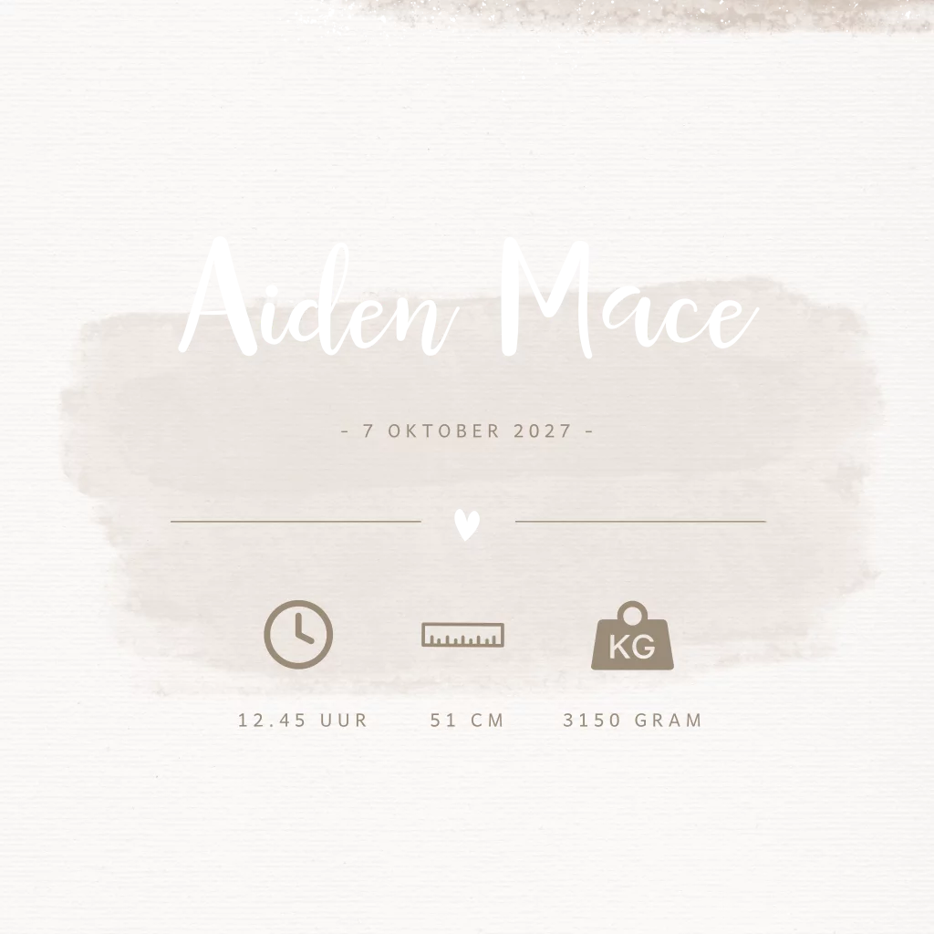 Een vierkant geboortekaartje met neutrale waterverf tinten. Het kaartje is aan beide kanten afgewerkt met foliedruk.