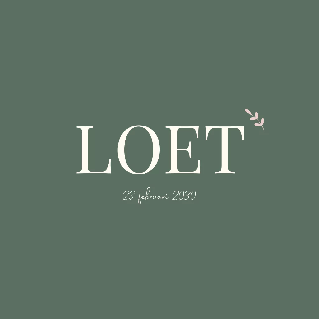 Een minimalistisch groen geboortekaartje met takje, pas het ontwerp aan in onze editor.