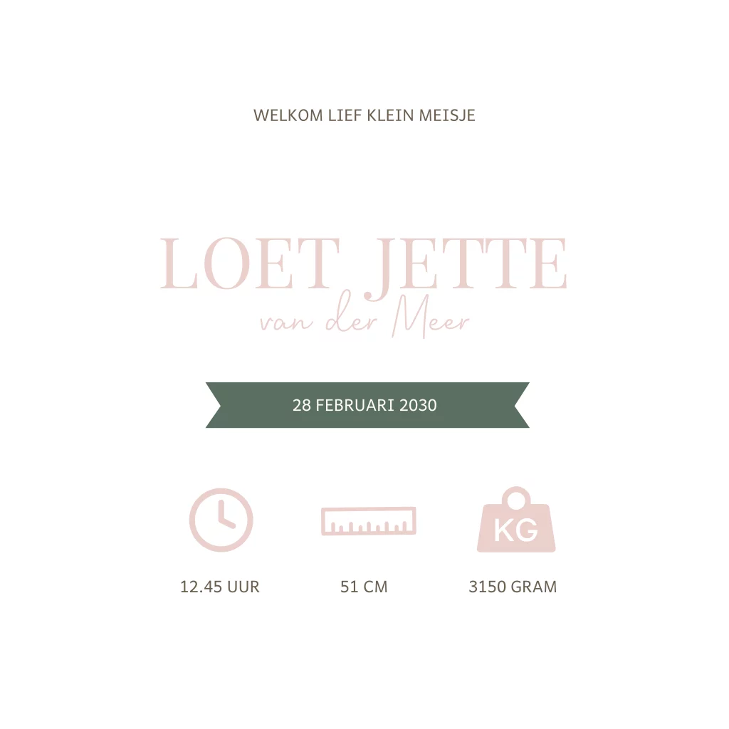 Groen geboortekaartje met stijlvol takje en neutrale kleuren