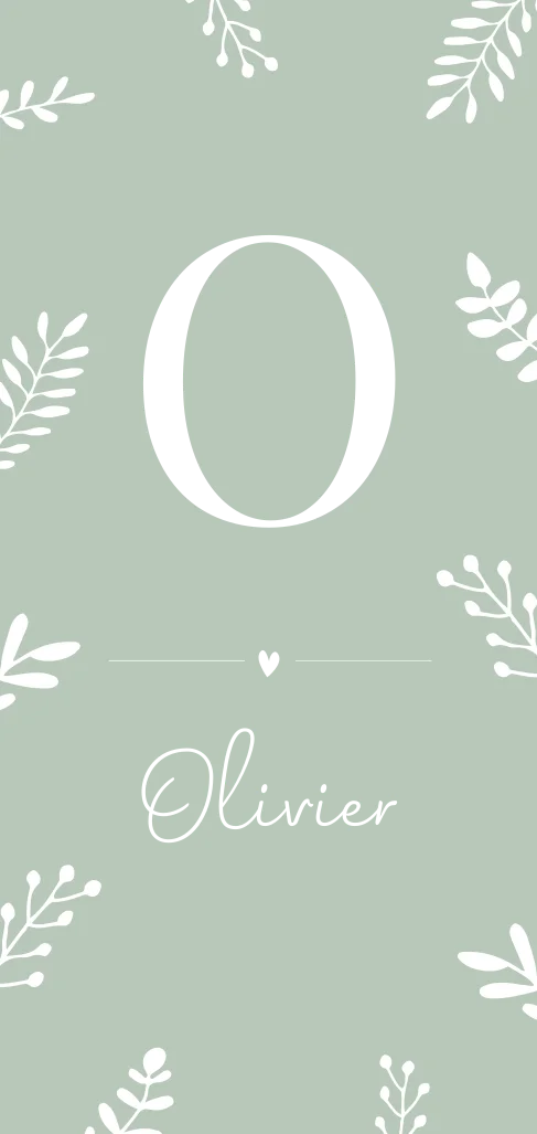 Een langwerpig, enkel geboortekaartje met een initiaal. Het kaartje is op de voorzijde afgewerkt met folie en heeft ronde hoeken.