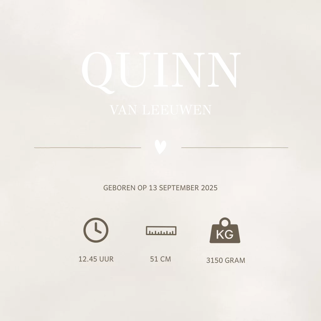Zandkleurig geboortekaartje met goudfolie